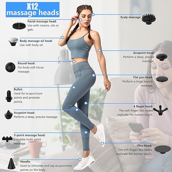 مسدس مساج اصلي متعدد السرعات مزود بـ 9 رأس لتقويه العضلات